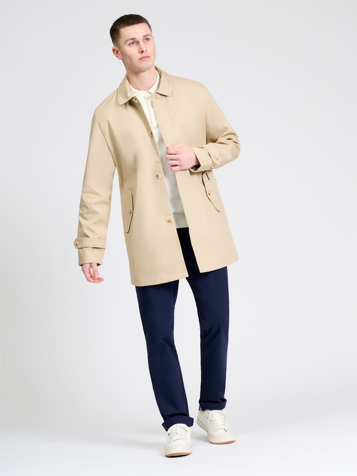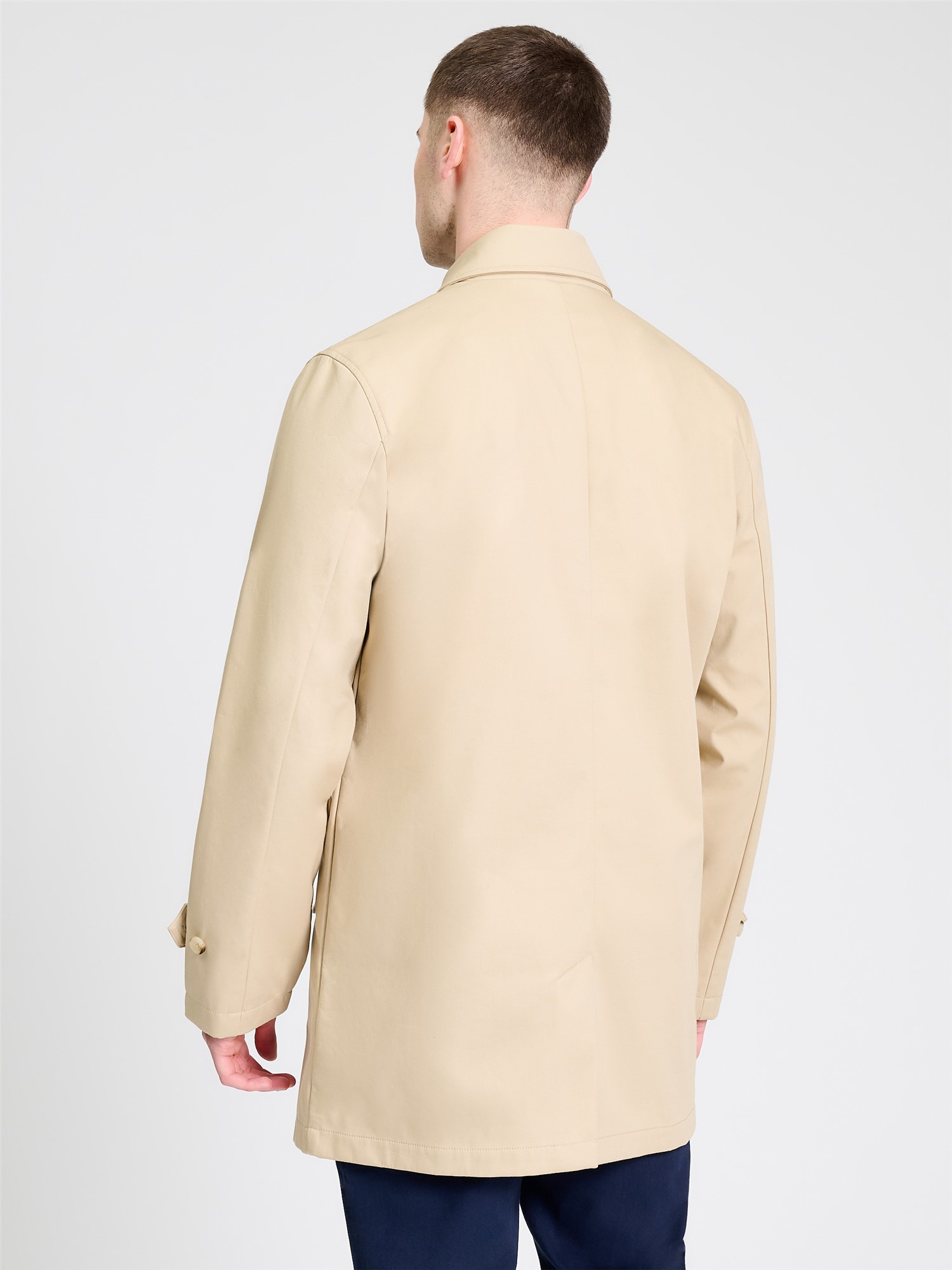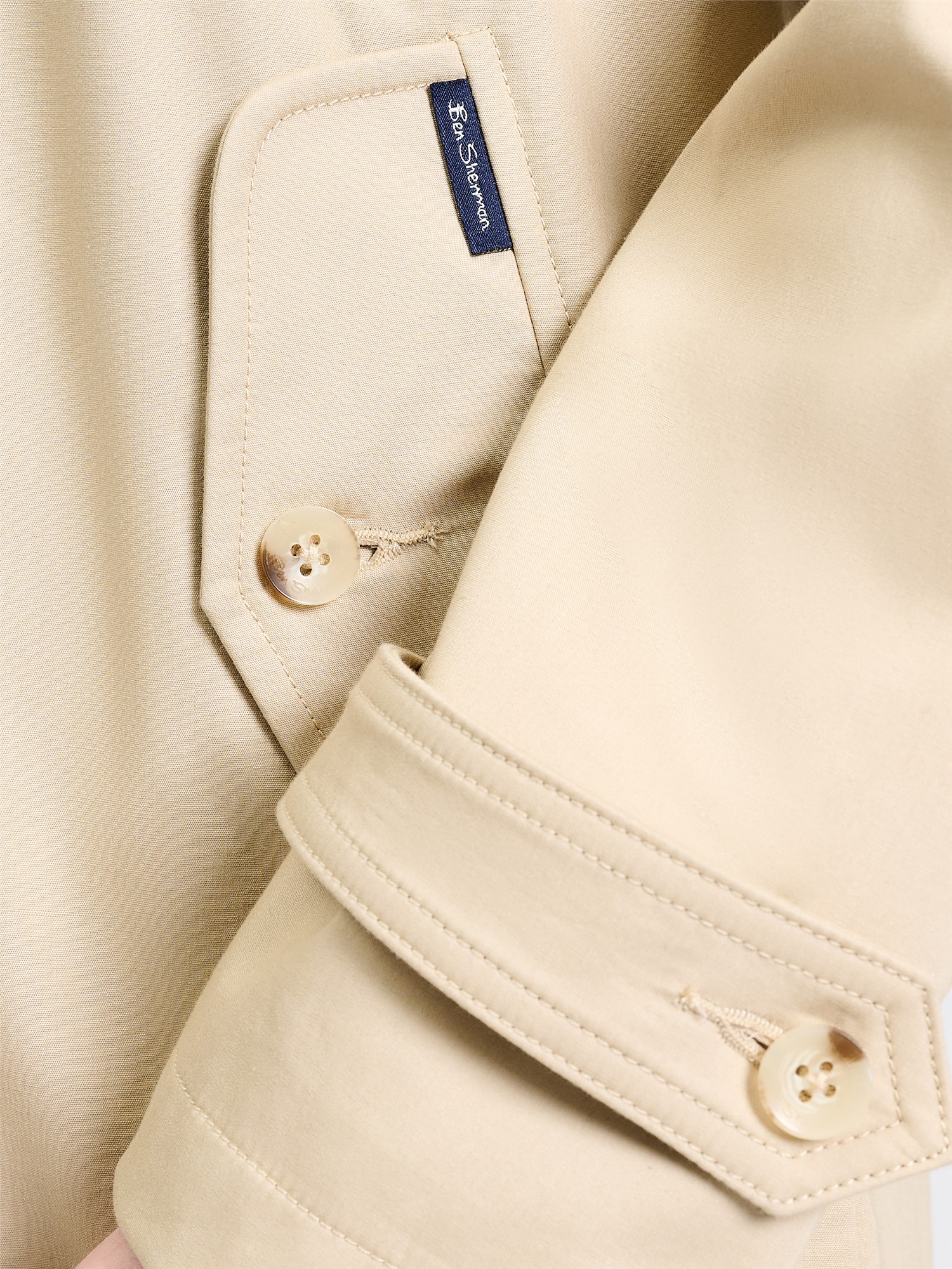 The Ben Sherman bonded mac crafted in 100% cotton, featuring a concealed button placket, flap pockets and storm straps on cuffs. This style has our iconic house check lining and a branded Ben Sherman woven label on the pocket.