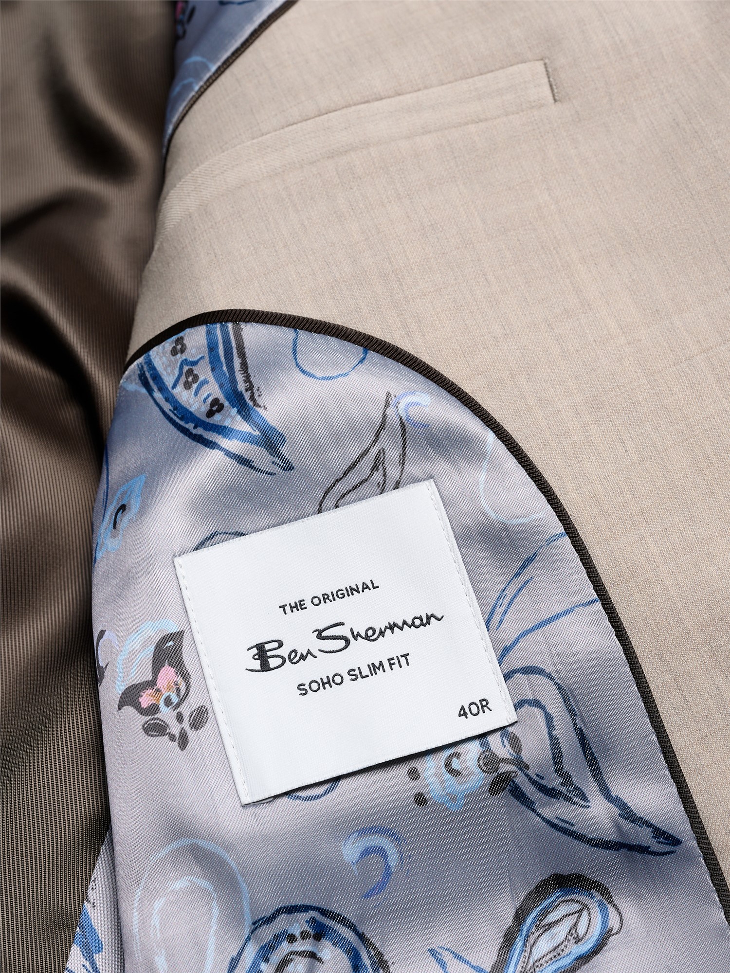 The Ben Sherman signature twill blazer is crafted in a wool rich fabric and complete with a paisley and a plain lining. Details include working cuff buttons and a contrast Melton under collar. This style is branded with a Ben Sherman mod tape and a target lapel pin for the final finish. Pair with our matching twill trouser for a complete look.